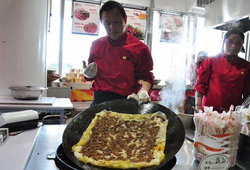 随着青岛世园会拉开大幕,园区内的各个美食广场开门迎客。记者在现场看到,几乎全国各地的知名小吃都能在这里找到,西北肉夹馍,台湾蚵仔煎、新疆烤肉串、兰州炒面,各地美食同时登场,令人眼光缭乱。
