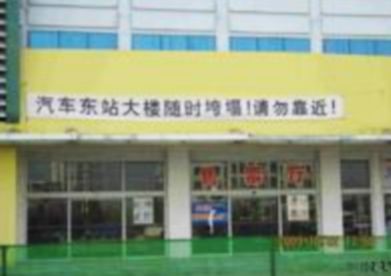 原因是:烟台市汽车东站的大楼上挂出了一个醒目的条幅,上面写着:“大楼随时垮塌!请勿靠近!”。而据记者了解,这个建筑面积约两万平米的汽车站是2001年底开工建设,2004年6月才竣工的。但是人们怎么也没有想到,仅仅5年左右的时间,汽车东站就成了一座危楼,当地老百姓套用时下的时髦用语把它叫“楼垮垮”。