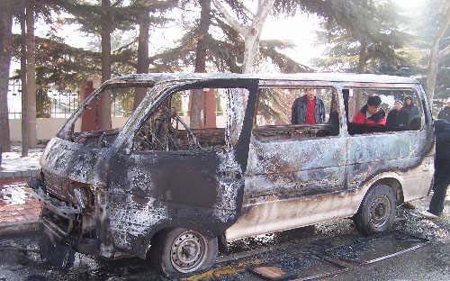 面包车行驶中发生自然燃六名乘客跳窗逃生